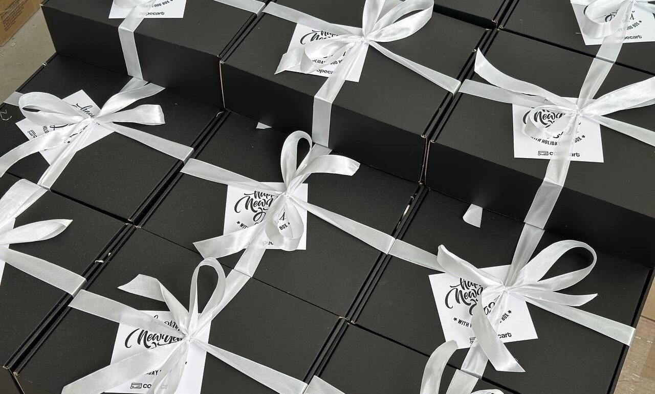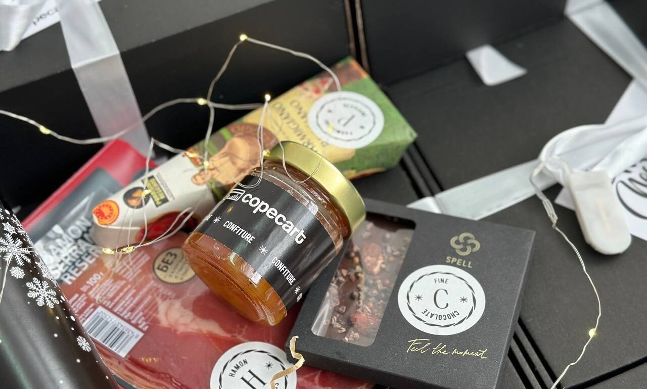 Набір “Christmas Food Box” обрала компанія Copecart, але захотіли виконати пакування не в дерев’яній коробочці. На заміну запропонували коробку з міцного картону чорного кольору, якраз під корпоративний колір клієнта ; )