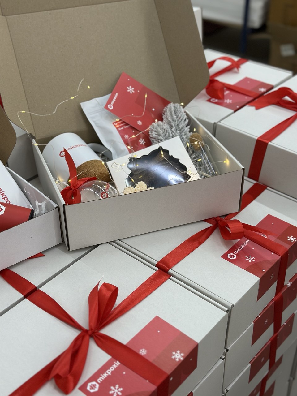 Елегантні подарункові бокси для Microxim у червоно-білих тонах