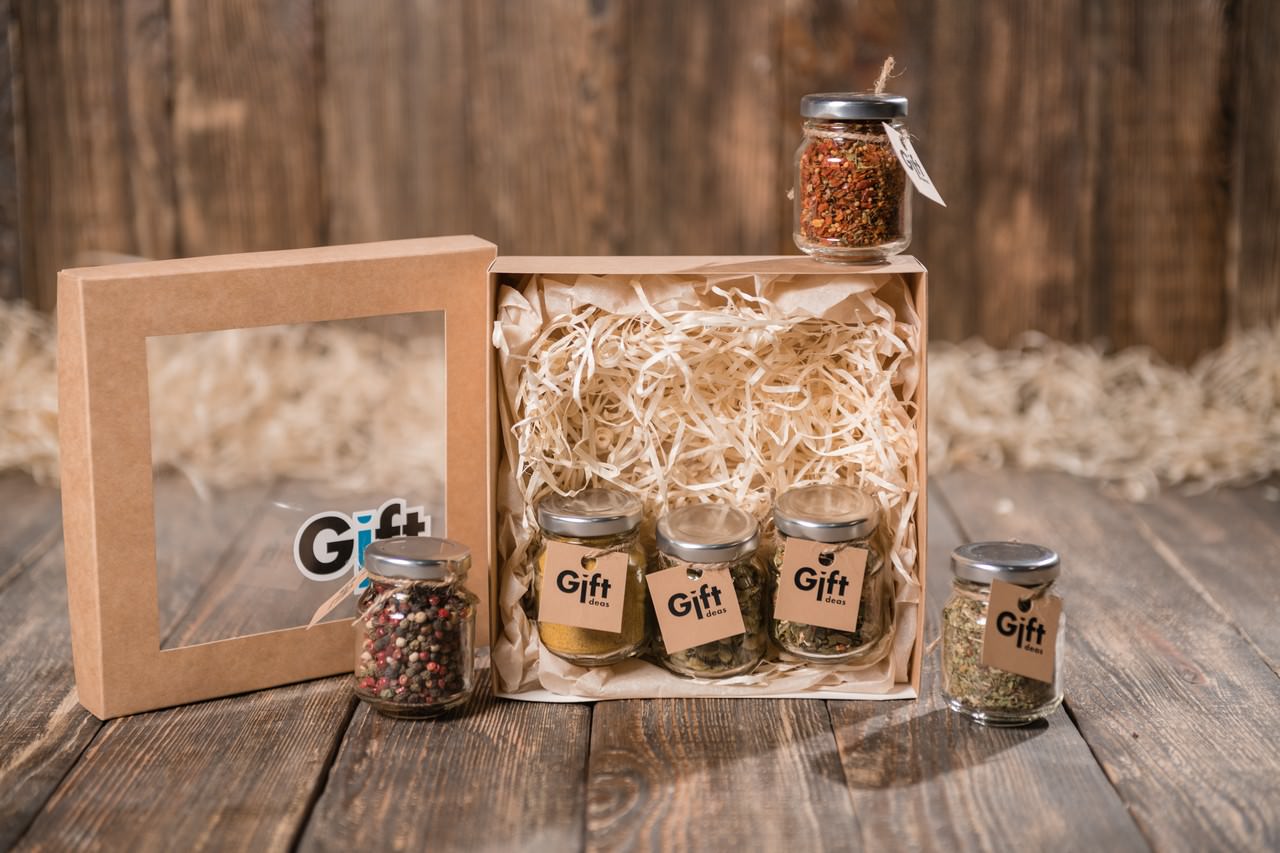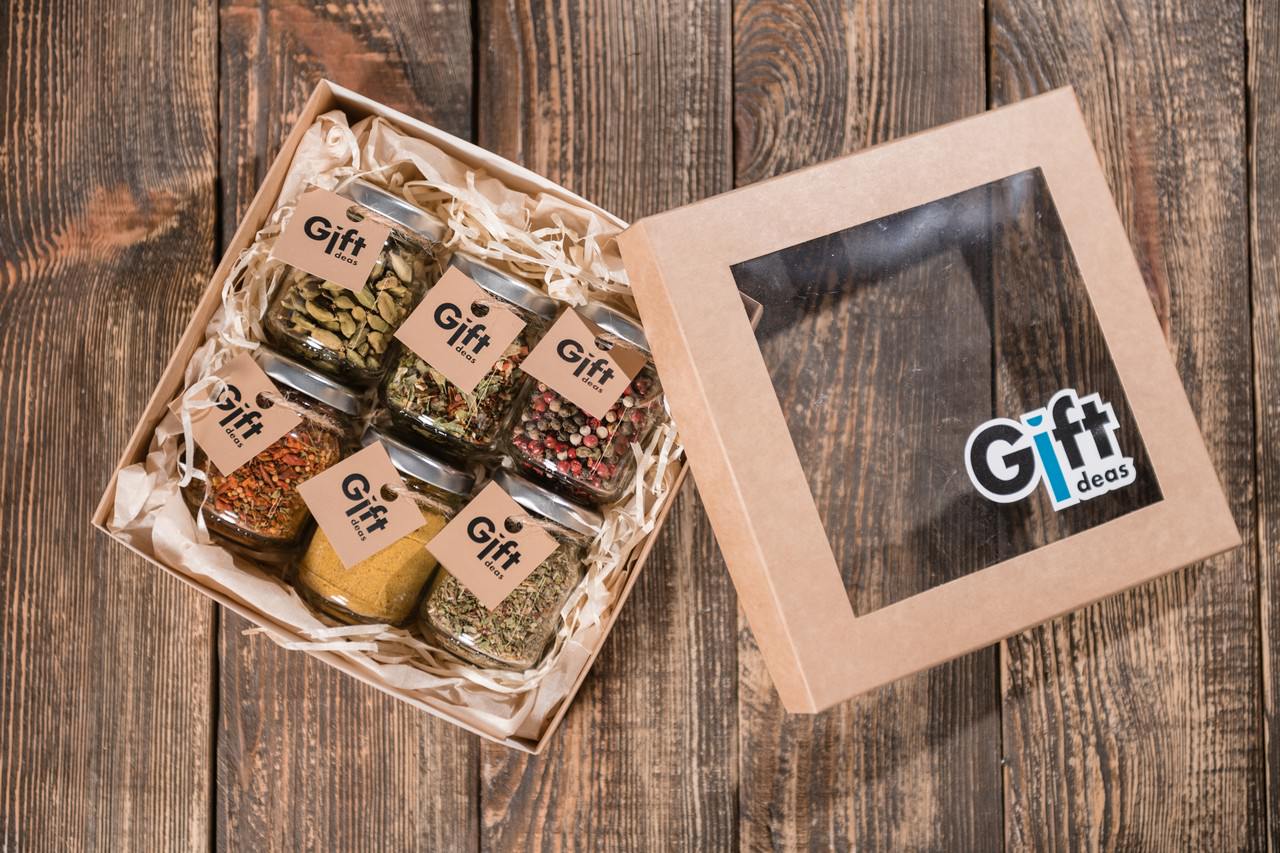 - Набір з 6 спецій в скляних банках (брендується, включено у вартість)